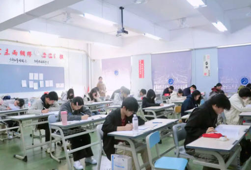 考场上,全体学生凝神聚力,紧握笔杆,专心致志地伏案作答。面对试卷上的道道考题,他们沉着冷静、从容应战,以扎实的学识落笔,字里行间尽显对知识的敬畏与求索的执着。